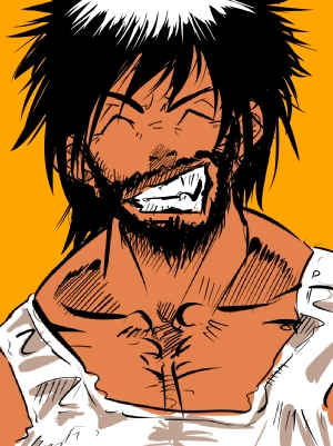 ボサボサの黒髪。ヒゲ。瞳も黒。